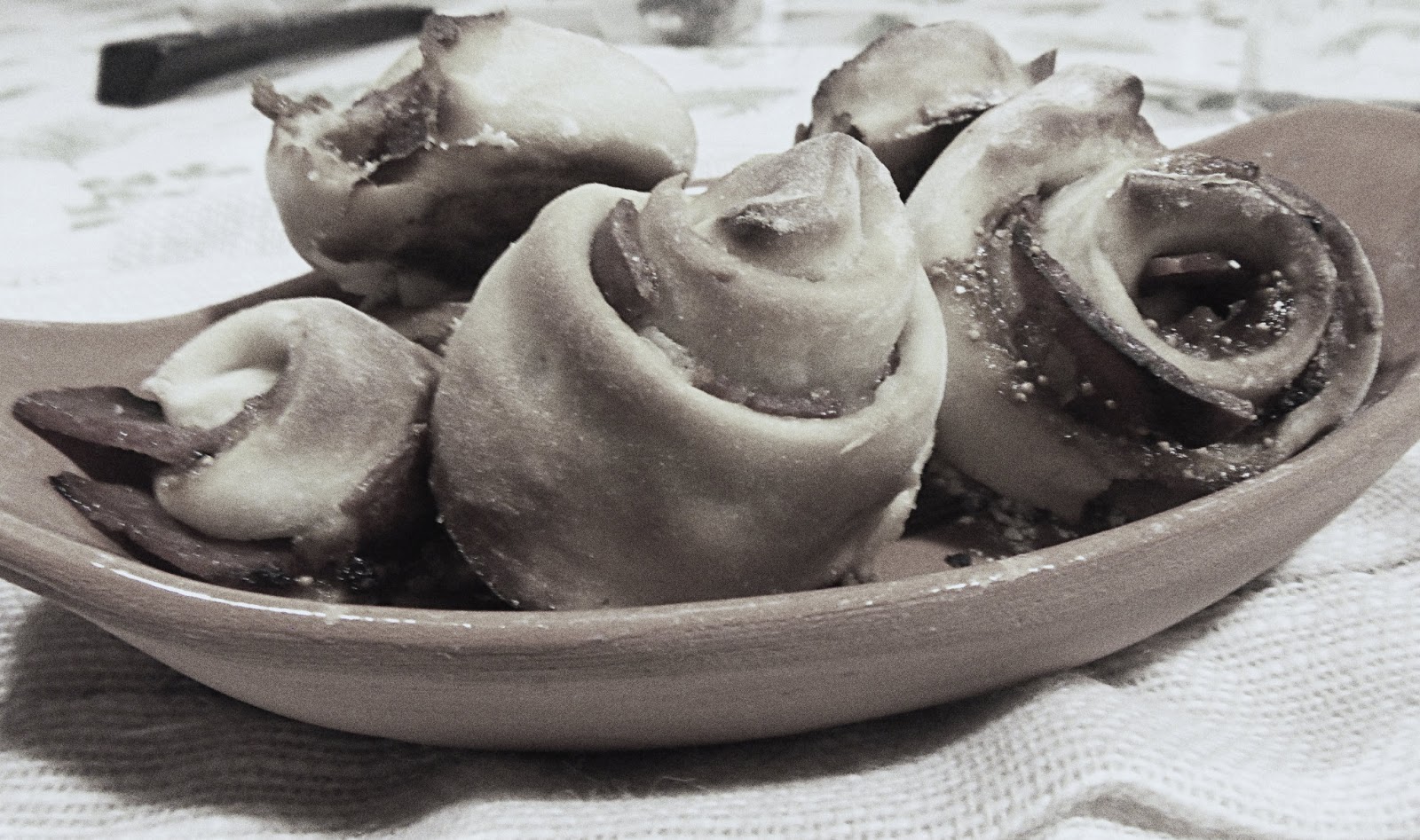 Mi consolo con girelle di pane di kamut con salame e composta di fichi