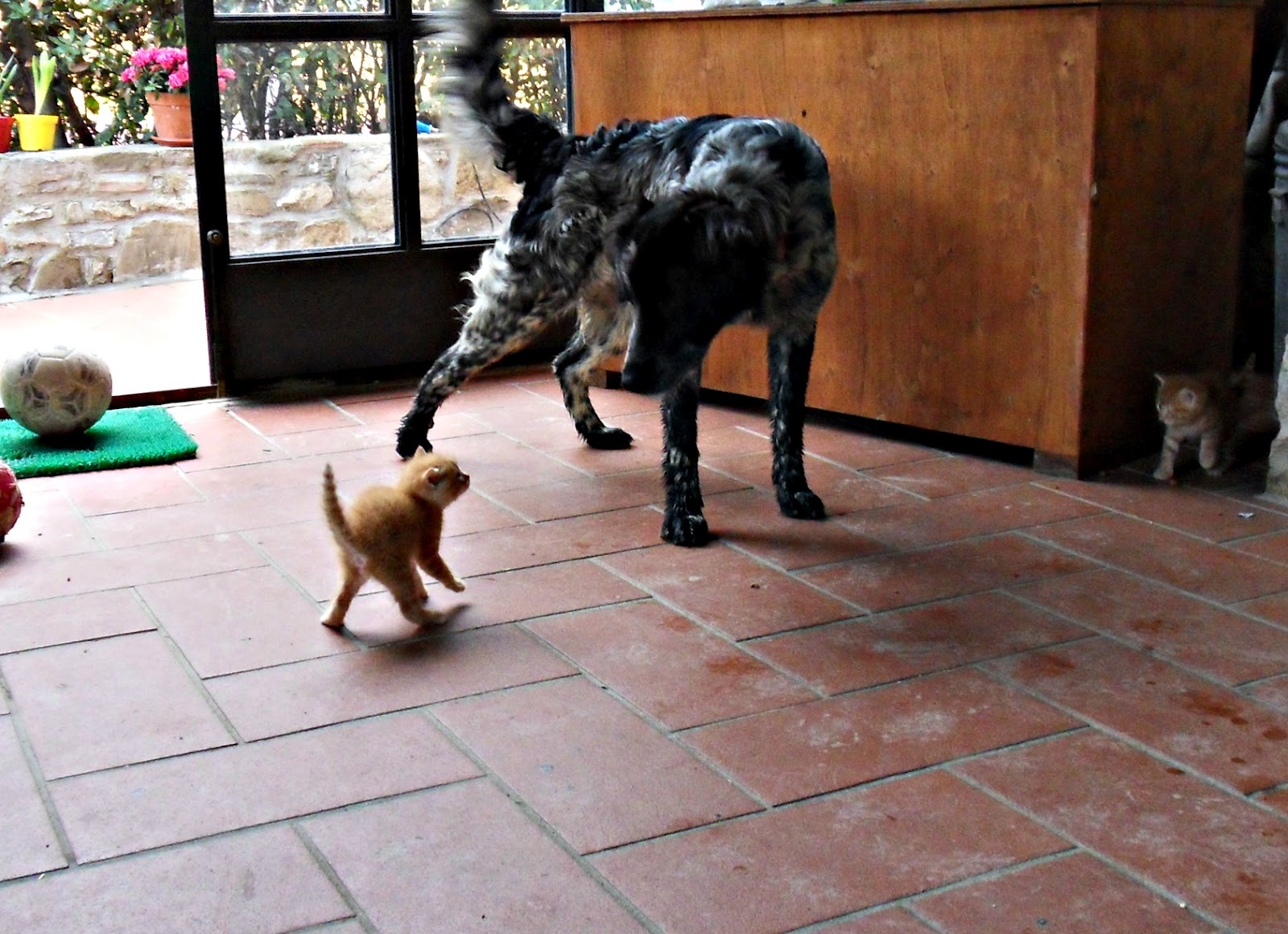 wow che bei paesaggi andando al lavoro!! E fortissimo il micetto piccolino che sfida il cane, ha già capito come funziona il divertimento!!